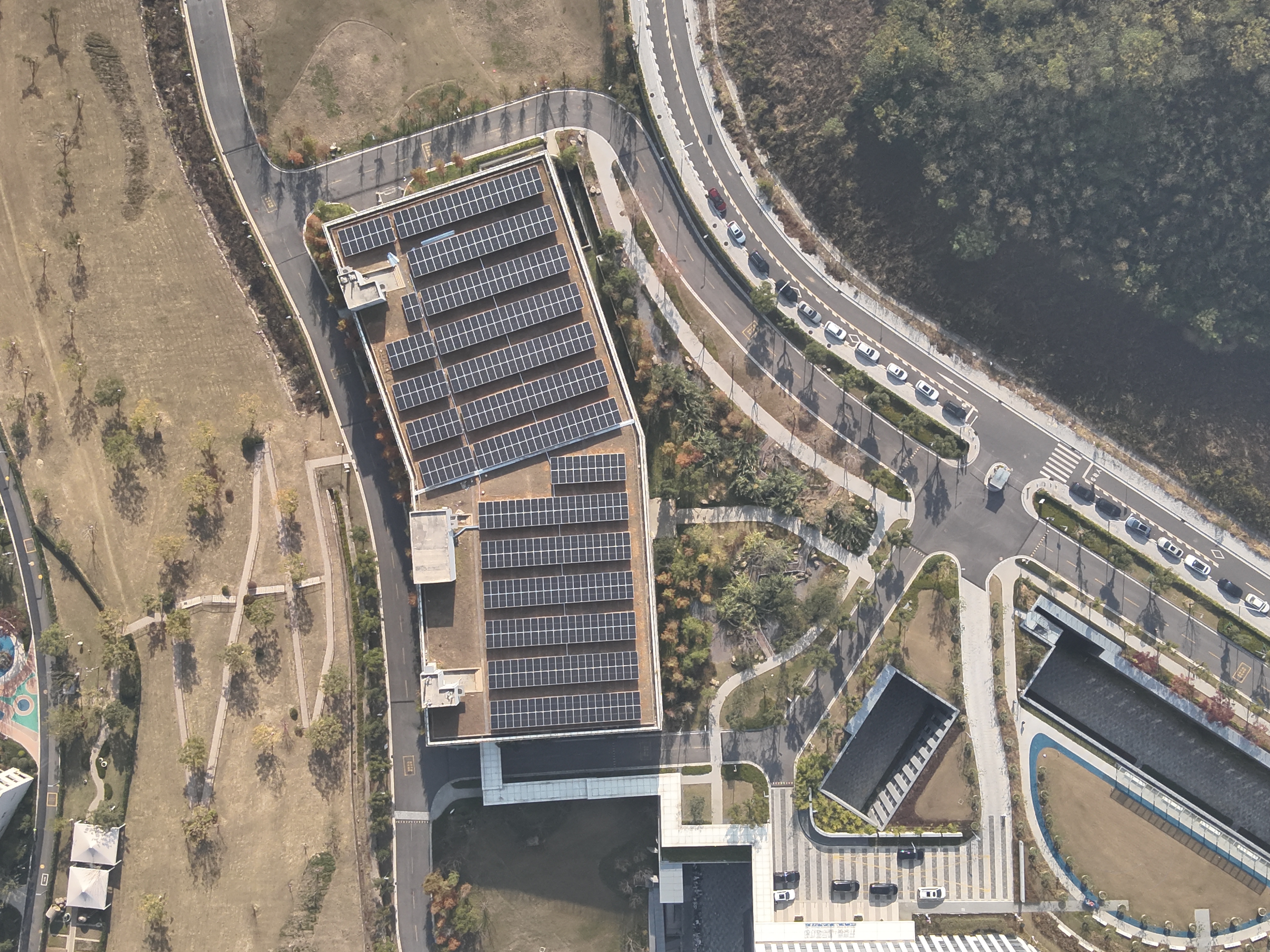 該項目位于江蘇省南京市棲霞區靈山北路188號,總裝機容量1.88MWP,安裝面積覆蓋8113㎡水泥屋頂及彩鋼瓦區域。項目采用業主自投模式,自發自用余電上網。美的新能源專業團隊針對醫療康養場景用能特性,選用2612塊720W高效光伏組件,搭配14臺110KW及4臺50KW光伏逆變器,構建分布式光伏發電系統,確保高效、穩定、安全。施工時,團隊創新采用末端并網技術方案,既縮減施工周期與工程量,又對標美的新能源工程全流程標準及泰康集團工程管理規范,保障項目建設質量與投運可靠性。