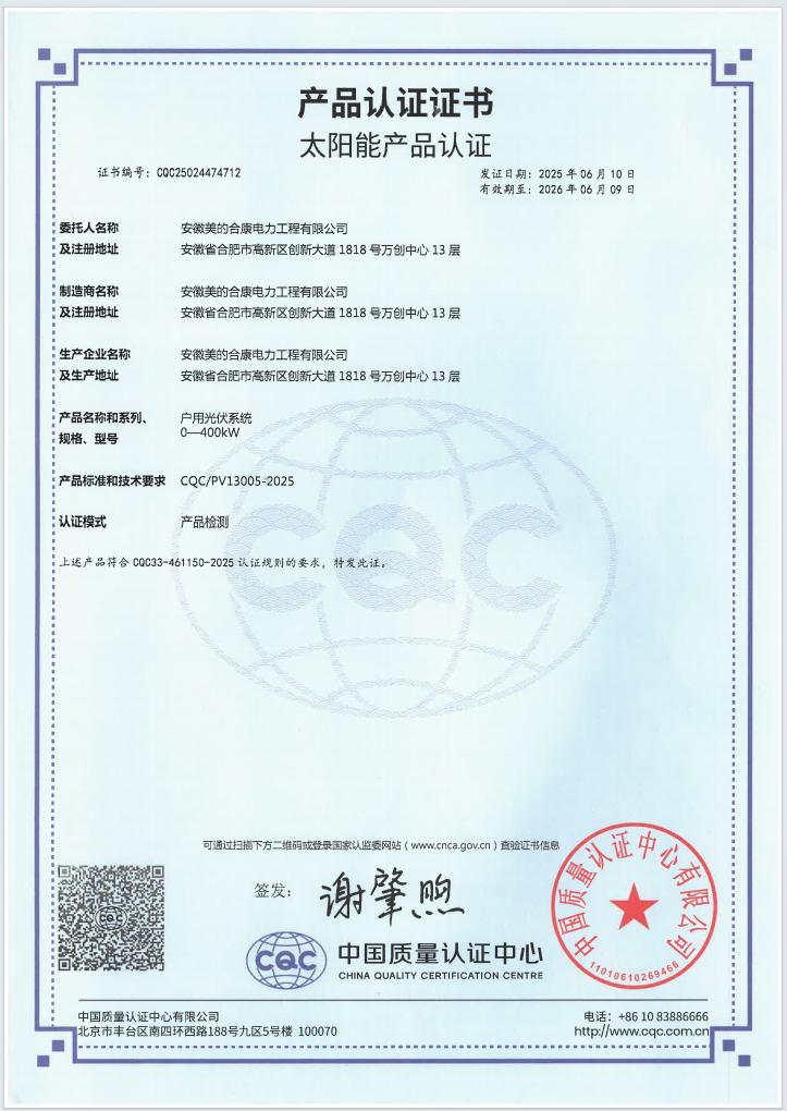 戶用光伏系統CQC認證49.7kW-CQC25024474712